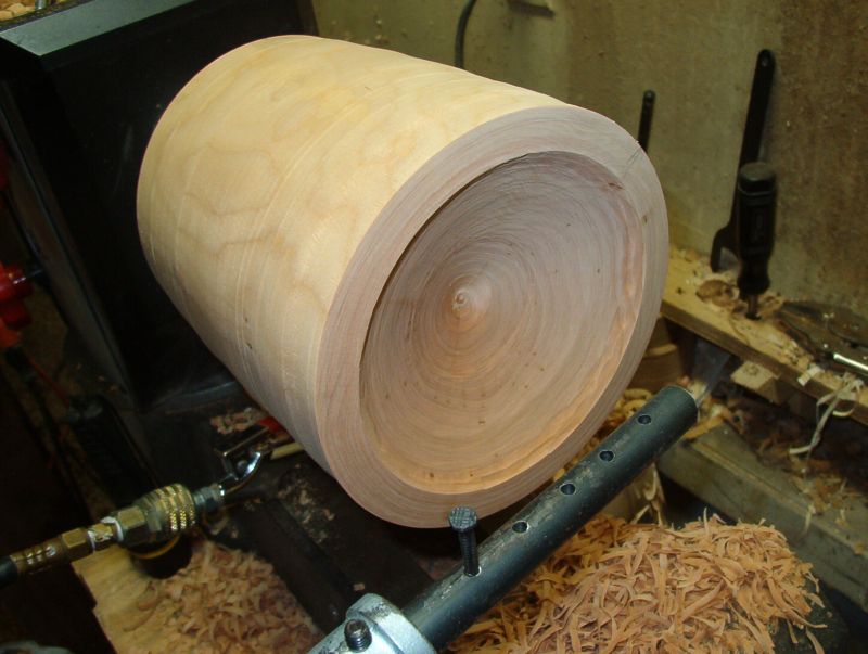 Now and then I checked for depth. I am sure some people can automatically sight and know how much farther they have to hollow, but I am not one of them. I would rather measure than make a funnel.