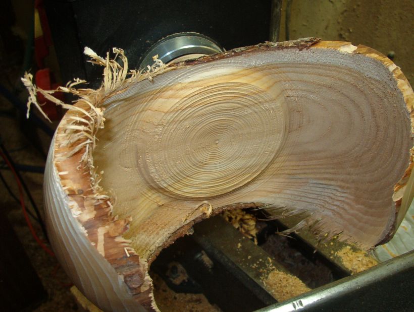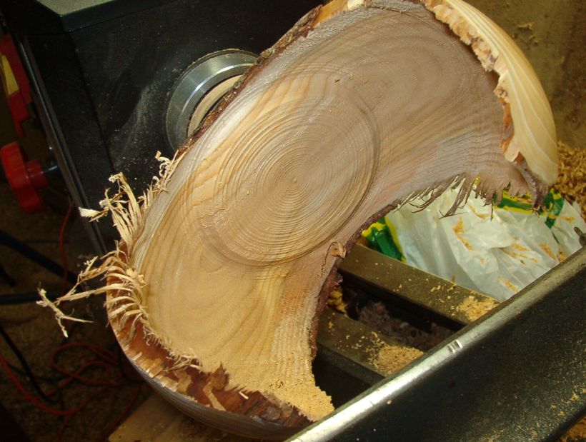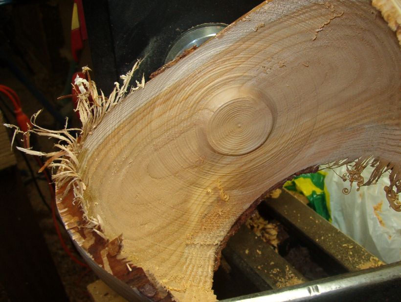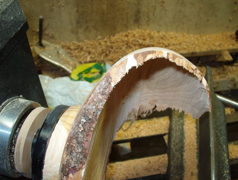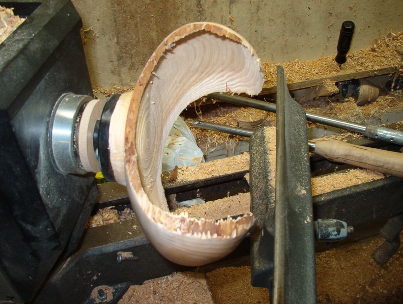 Both are seen a little better here. I have hollowed the piece leaving an "island" to be removed with the straight tool.