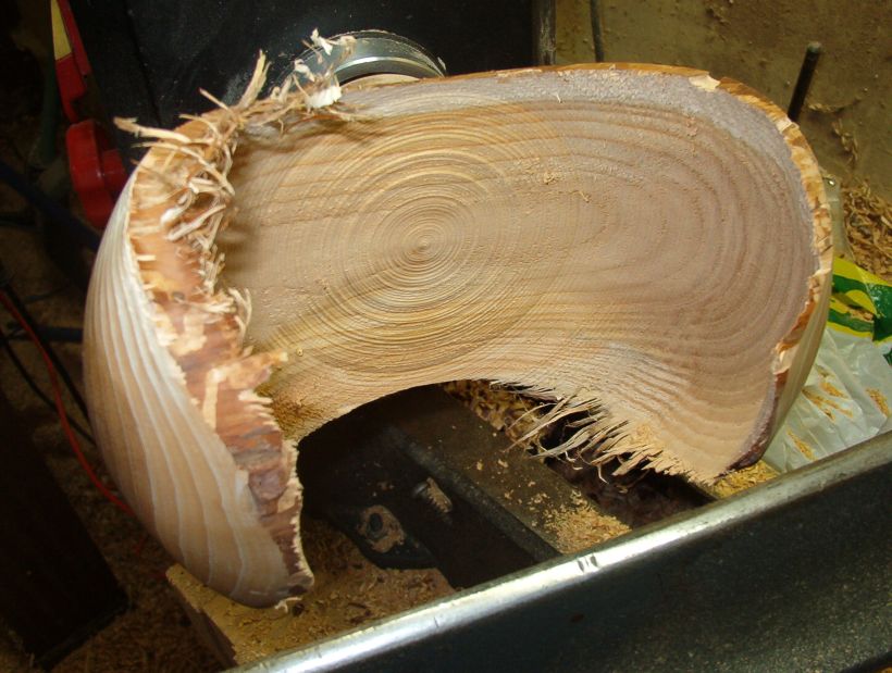 The upper edge has been cleaned up somewhat with the 45° tool and the bottom is closer. Note the insect damage about 1/3 of the way up on the edge. It is filled with fine powder from the larvae.