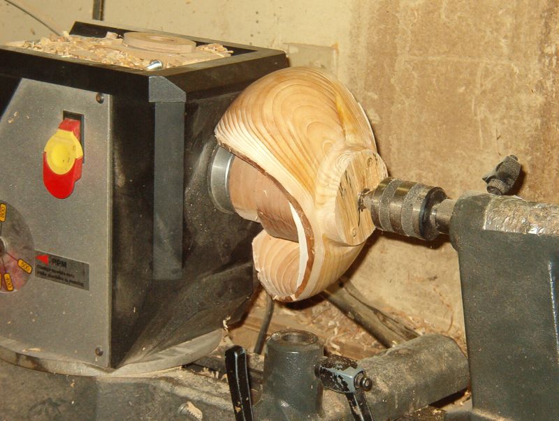 Then I carefuly adjust the piece for center, tighten the tail stock, and bring up a 3/16" Oland to finish the bottom