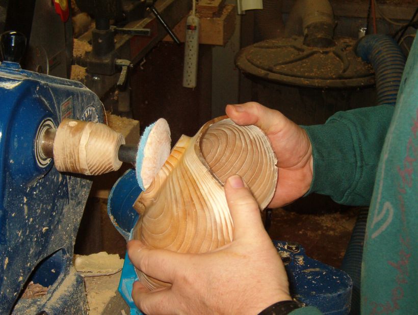 Continue through the grits until you reach the one used on the rest of the bowl. This goes very quickly. Be careful with the coarser grits as it is easy to groove the bottom of the bowl.