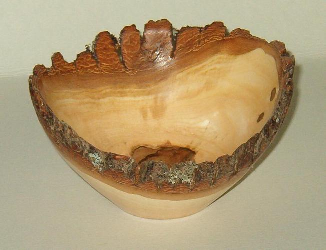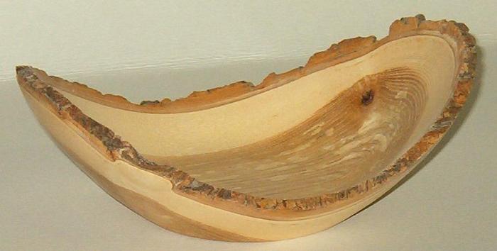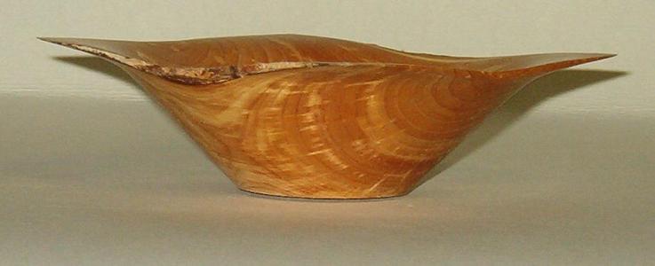 As I was cleaning the shop one day I found a half log of ash and turned it with a natural edge. Some people call these "banana bowls" because of the distinctive shape. It is about 9" long and 5" wide by 3" high.