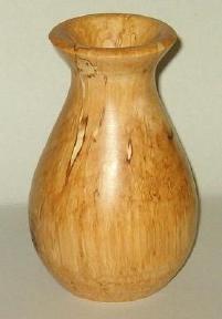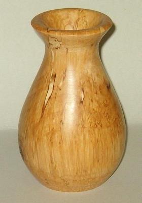 This vase is turned from a piece of spalted birch left behind when the power company was cutting right of way at my parent's cottage. While birch tends to be very white wood, the color and spalting is a result of fungal growth in the wood and gives the piece a character that can not be duplicated. It is about 6" high and 3 1/2" wide