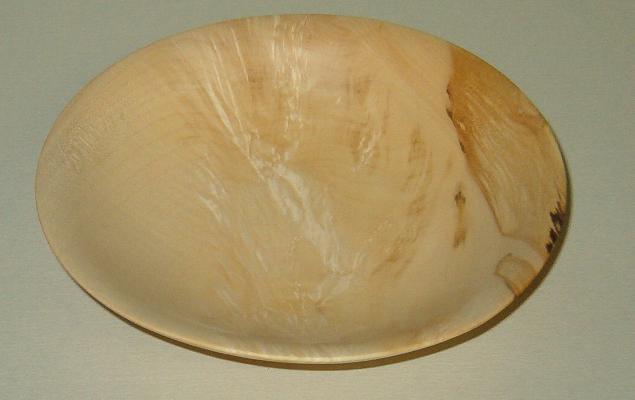 I had a small piece of maple crotch wood and used it to turn this 6" plate. The crotch gives it that distinctive "feather" grain.
