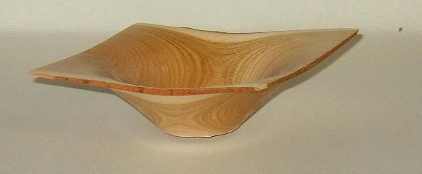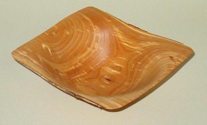 Top and side views of another square bowl in pin cherry, this one from a tree that was dead on the stump and had beautiful color throughout. The color may have been from insect or fungal activity or the minerals from the swamp just behind it, or maybe all three.