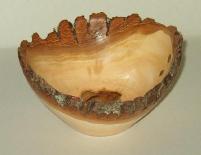 This is another of those cleaning pieces. Normally I would turn a bowl with face grain orientation but here the wood was dry enough that I felt I could turn it with the center of the tree left in and not get splitting. Thankfully, I was right. About 4" diameter by 3" high.