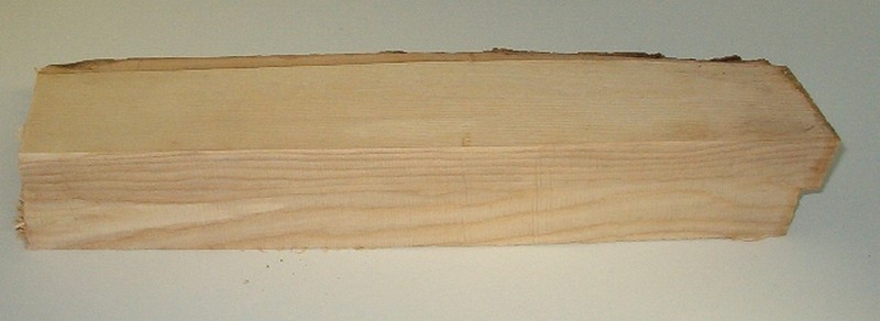 I start with a slab of maple or other hard wood about 1/ 1/4" thick and 2 to 2 ½" wide. Here I am using a piece of ash about 3" thick which I will take to the band saw and get two pieces, one for nuts and one for glue blocks.