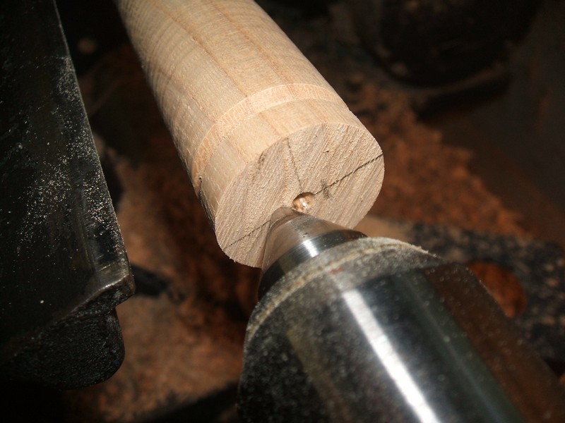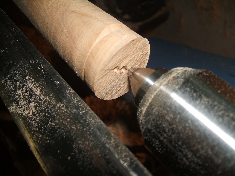 Repeat the process on the other side. This leaves a distinctly oval shape to the handle. Move the tail center back to the center mark and refine any beads as necessary. Sand now if necessary.
