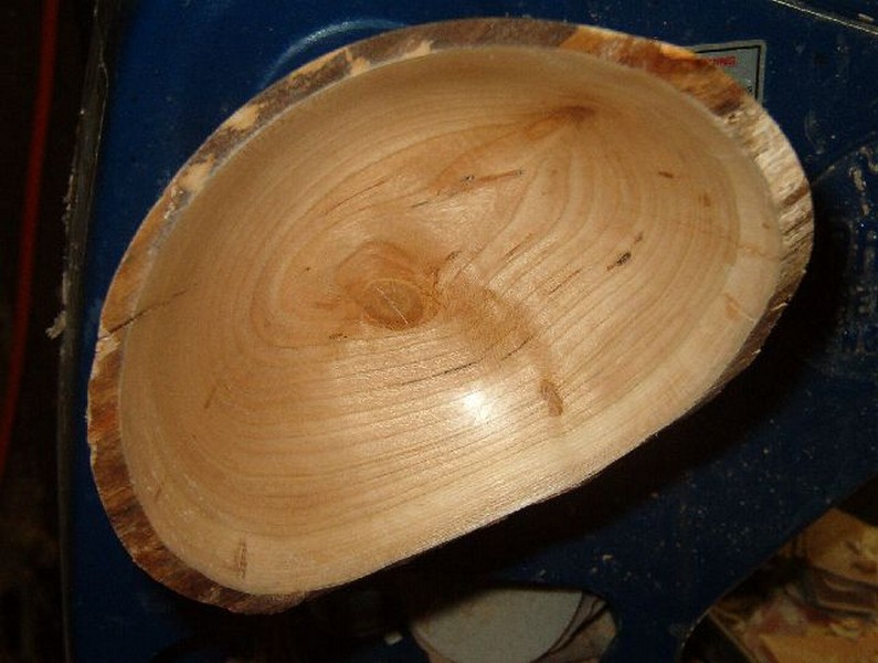 With the outside of the bowl trued up and the from established I begin to remove the escess in the interior. Generally I cut down about an inch at a time and then blend the areas together. Especially at the edges of a piece like this there is little support for the ends except for the next wood into the bowl and the rim is not a complete circle.
