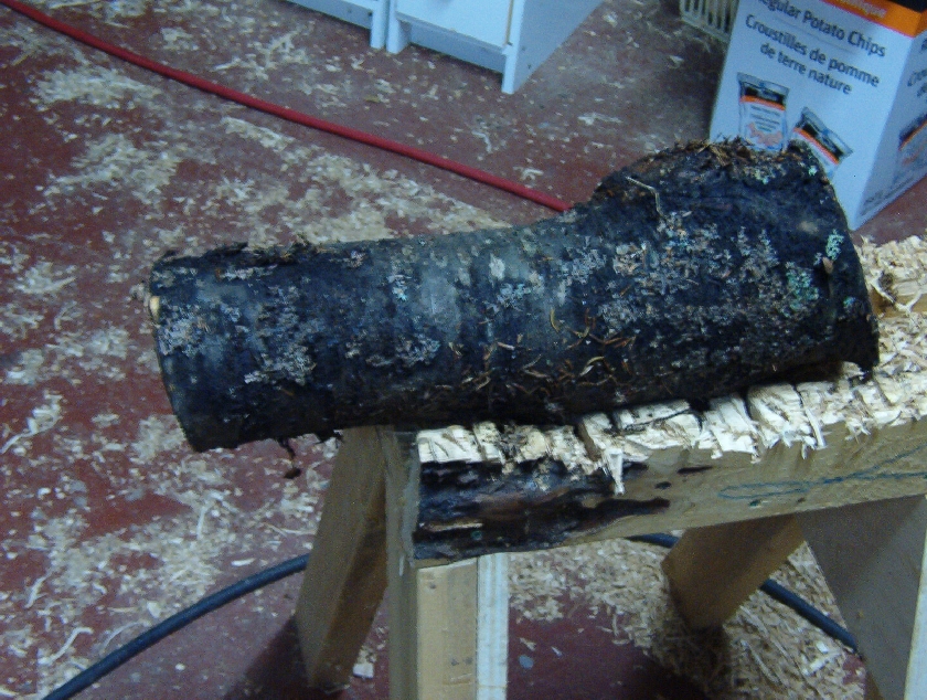Pin cherry is a light wood but strong enough for this purpose. I decided to take a short length off this piece, saving the burl for later.