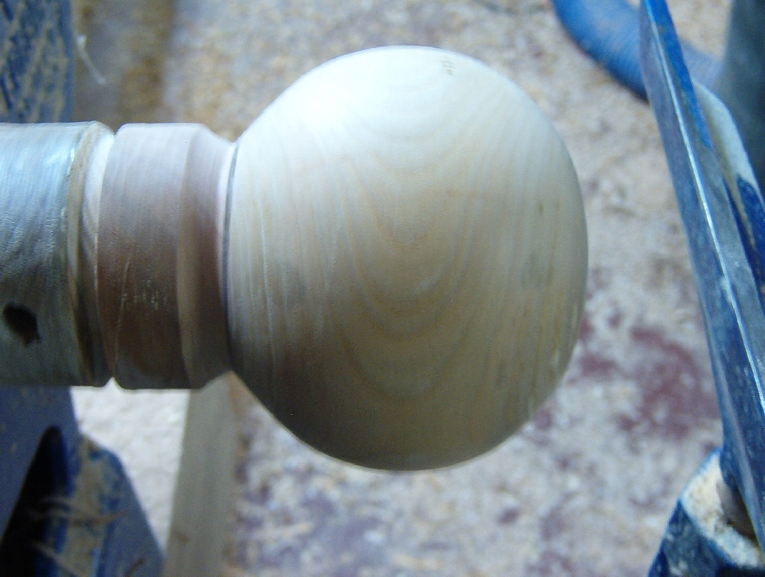 Then the cylinder was roughed to a sphere and one end flattened for a glue block.