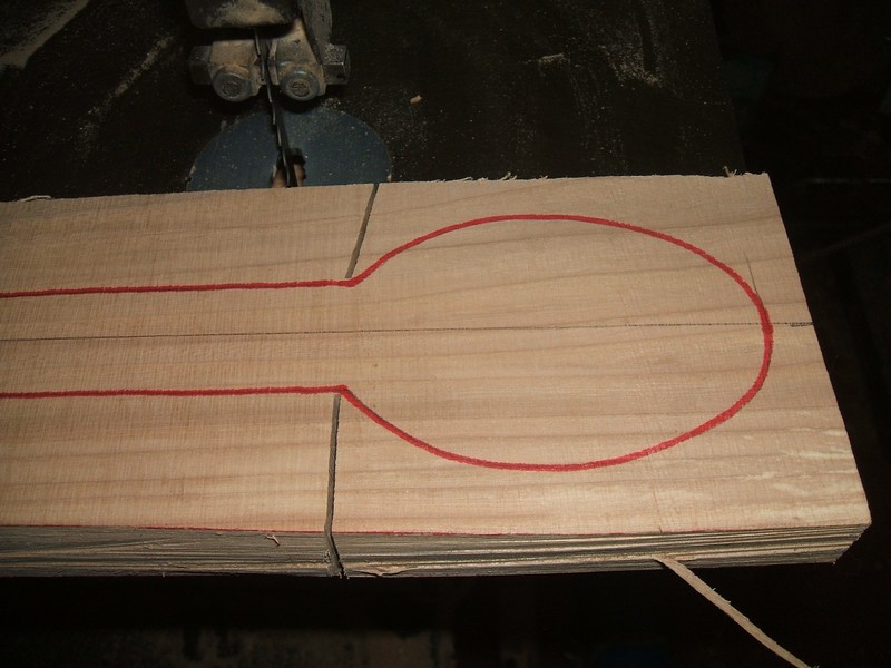 They are then cut out on the band saw. I do this one at a time but you could hot glue them together and cut them as a group if you so desired.
