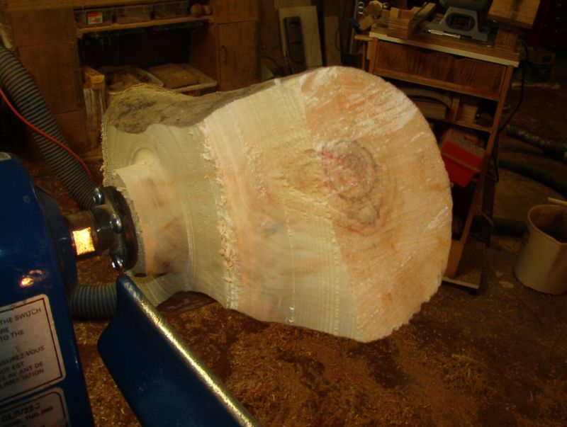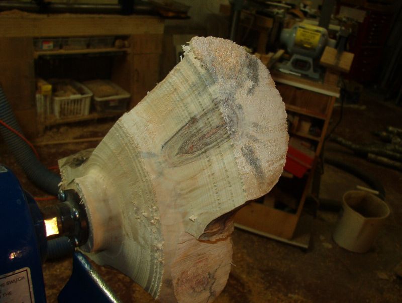 The waste wood is turned away to leave the overall shape. Next I need to sand the bottom and look at turning away the top.