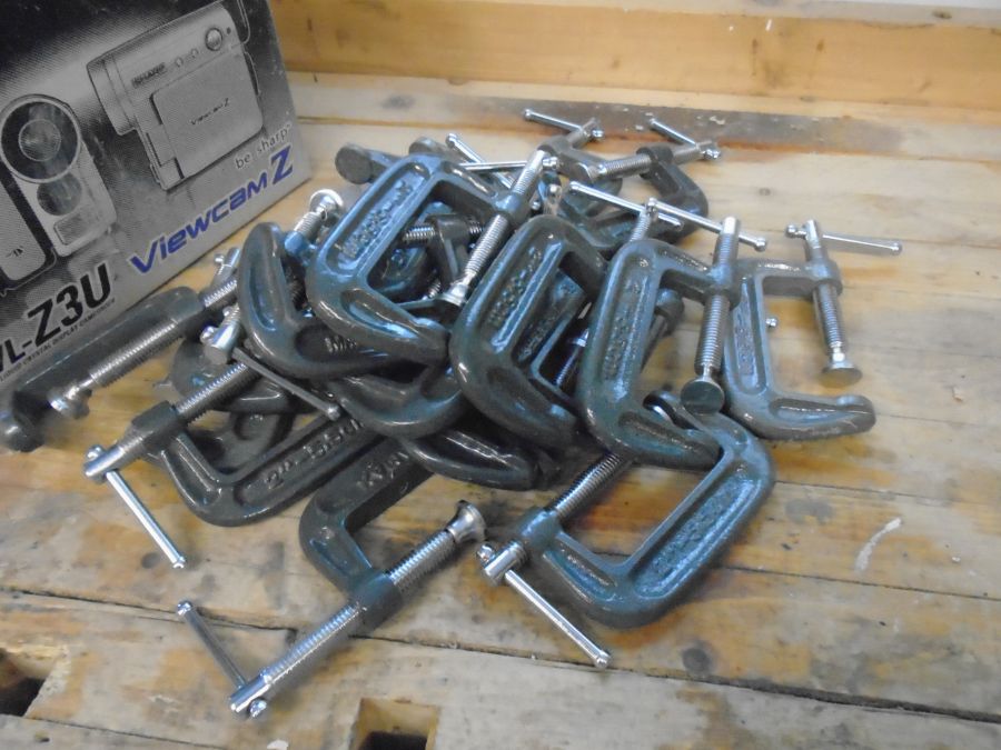 A box of "C" clamps was found beside the workbench. A local dollar store had them on sale for a couple of dollars each. These were a real bargain so I got a bunch they have not had them since. Maybe a remainder sale or something similar. These will join the other clamps on the router table for now.