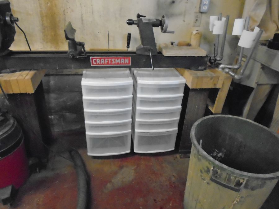 | Those broken cabinets that were removed from the lathe have been replaced with a couple of units that I had on hand. |