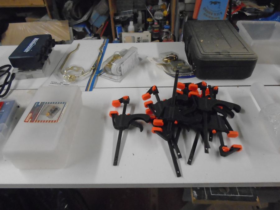 | As I was emptying the broken cabinets I found a bunch of small clamps I again got from a dollar store. These are great. If you find something like this, I advise buying one and seeing if it is any good before buying more. What looks good in the dollar store may act more like a dime at home. |