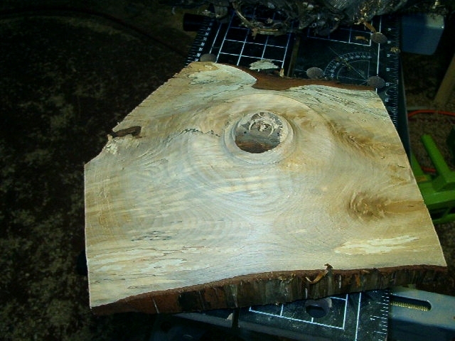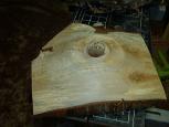 | The bottom is starting to take shape. Note the bark on the upper right quadrant. It may or may not stay. I am considering how much to leave and how much to leave in place. Even if it comes off it will leave a gorgeous brown mark that will leap to a chocolate shine when the oil hits it. |
