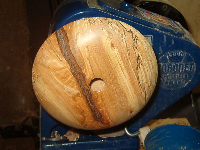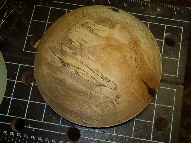 I sanded the bottom flat, attached a glue block with hot glue, finish turned, hollowed and sanded. Here is the top before the finish goes on,