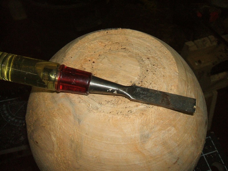 A bit of work with a bench chisel and mallet smoothes the bottom for a glue block.