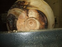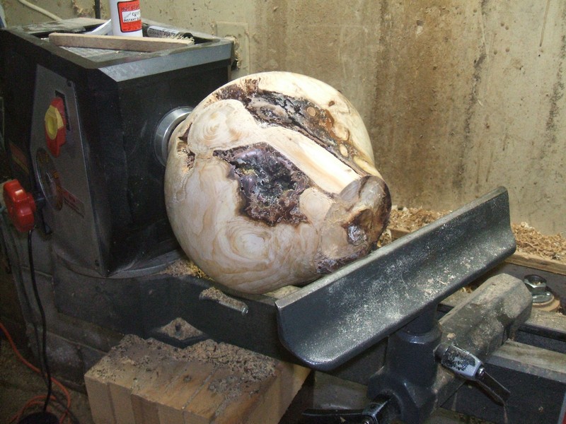 One of the advantages of a swivel head lathe is the option of turning the head a few degrees for hollow turning. The tool rest is easy to use without some kind of extension which would be needed if the work were turned farther. Try to find a place for the work which is comfortable for you and reached by the tool rest, at the same time remembering that the handle of the hollowing tool may need to reach significantly counter clock wise during the work and the tail stock or the body of the lathe may be in the way. Of course, readjustment is easy.